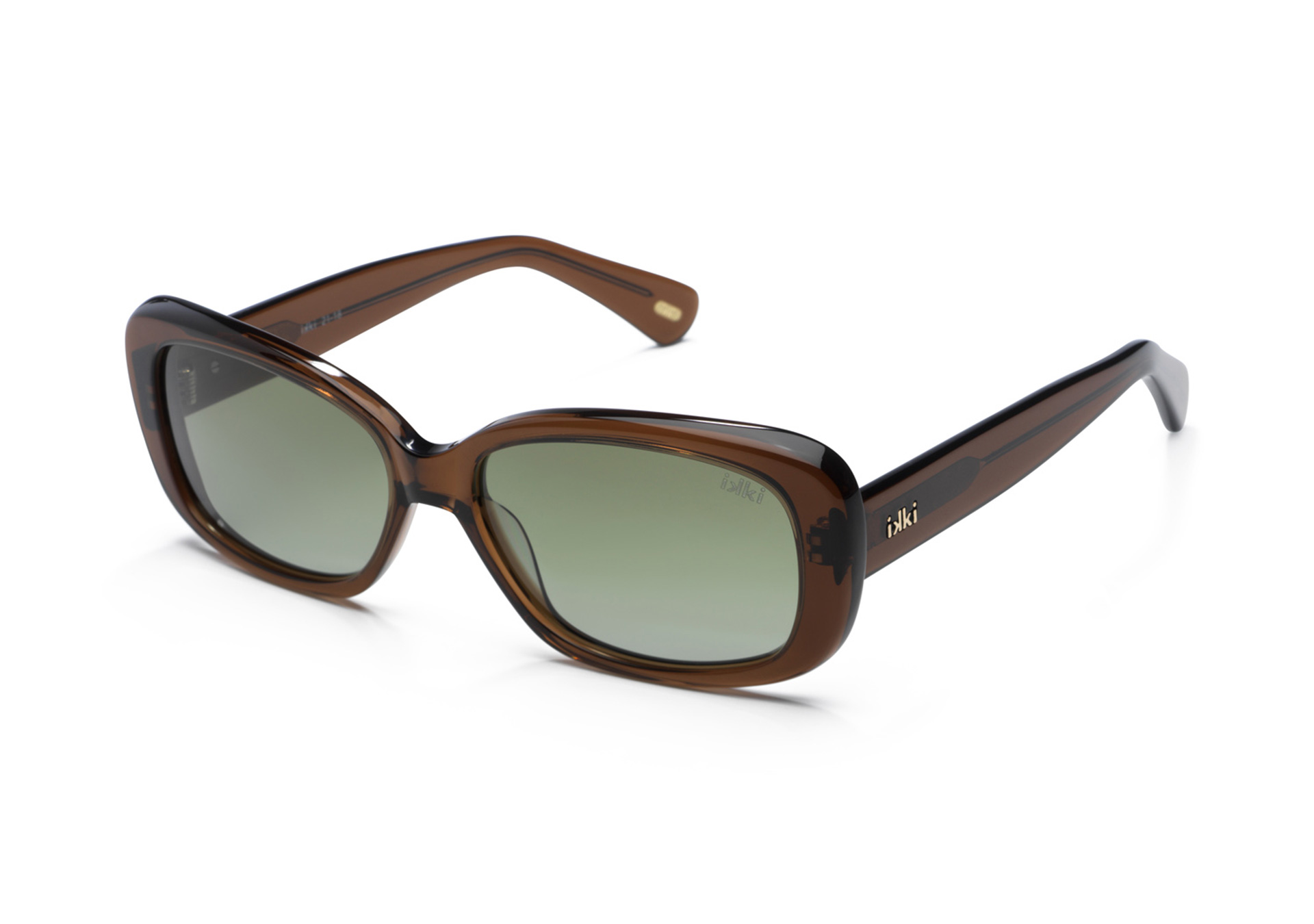 The new handmade KIKI 21-18 is made out of plant-based acetate with a crystalline transparent brown color.