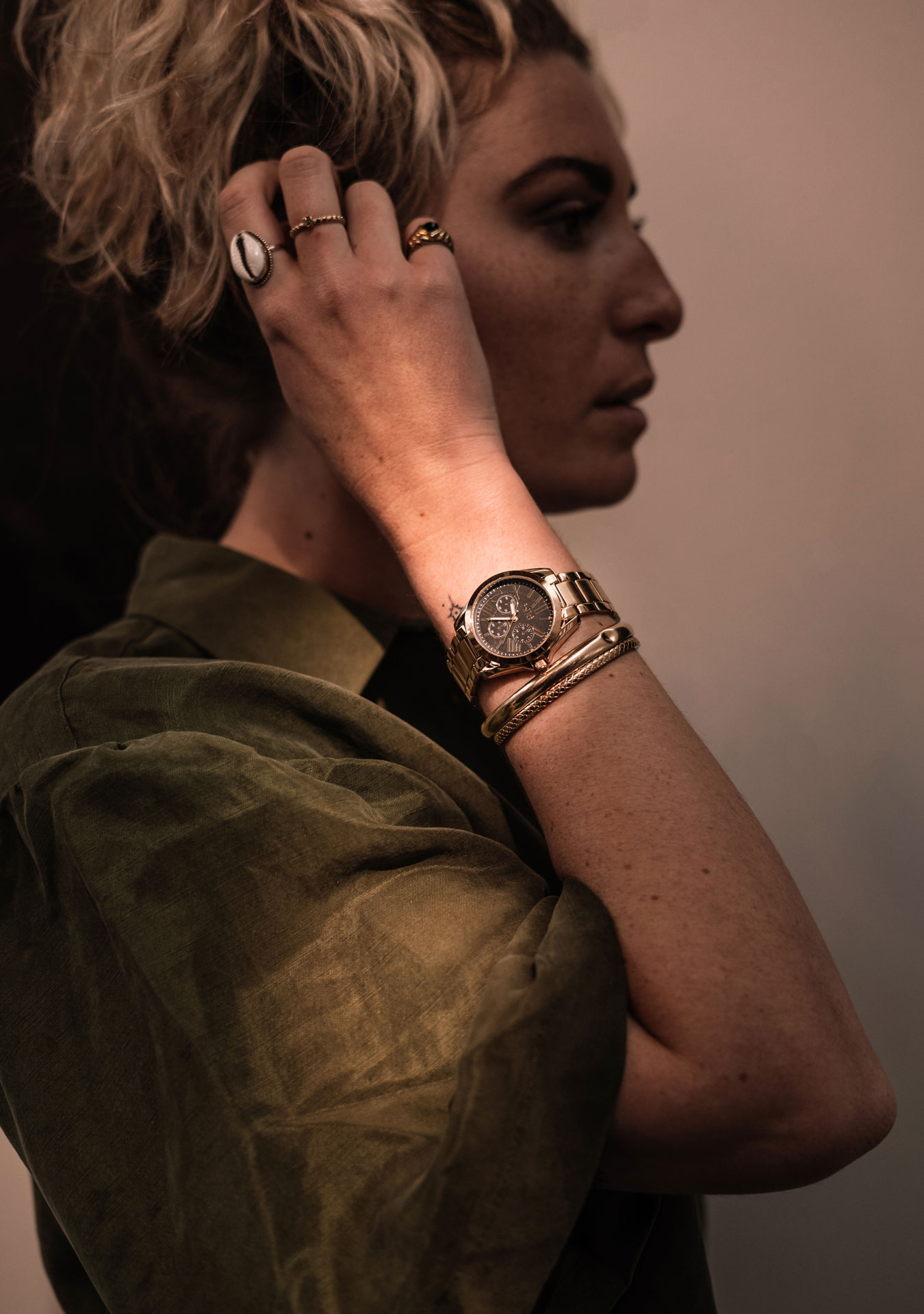 The golden metal strap is made of high quality materials. The back and buckle are made of stainless steel.