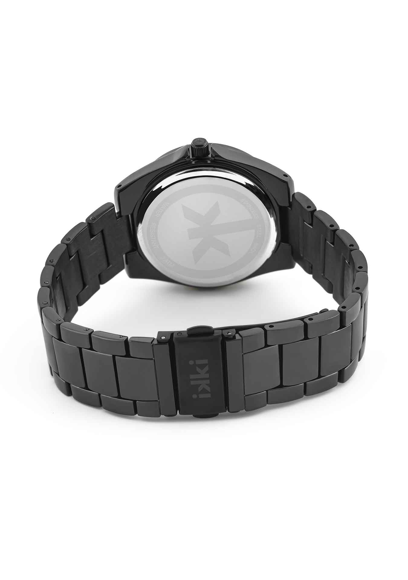 This watch from the NOVA-collection has a diameter of 36MM and a heigt of 8 MM. The shape of the case is round and has the color black. The dial color is black with silver index. All IKKI watches are 3ATM and are made with hardened mineral glass.