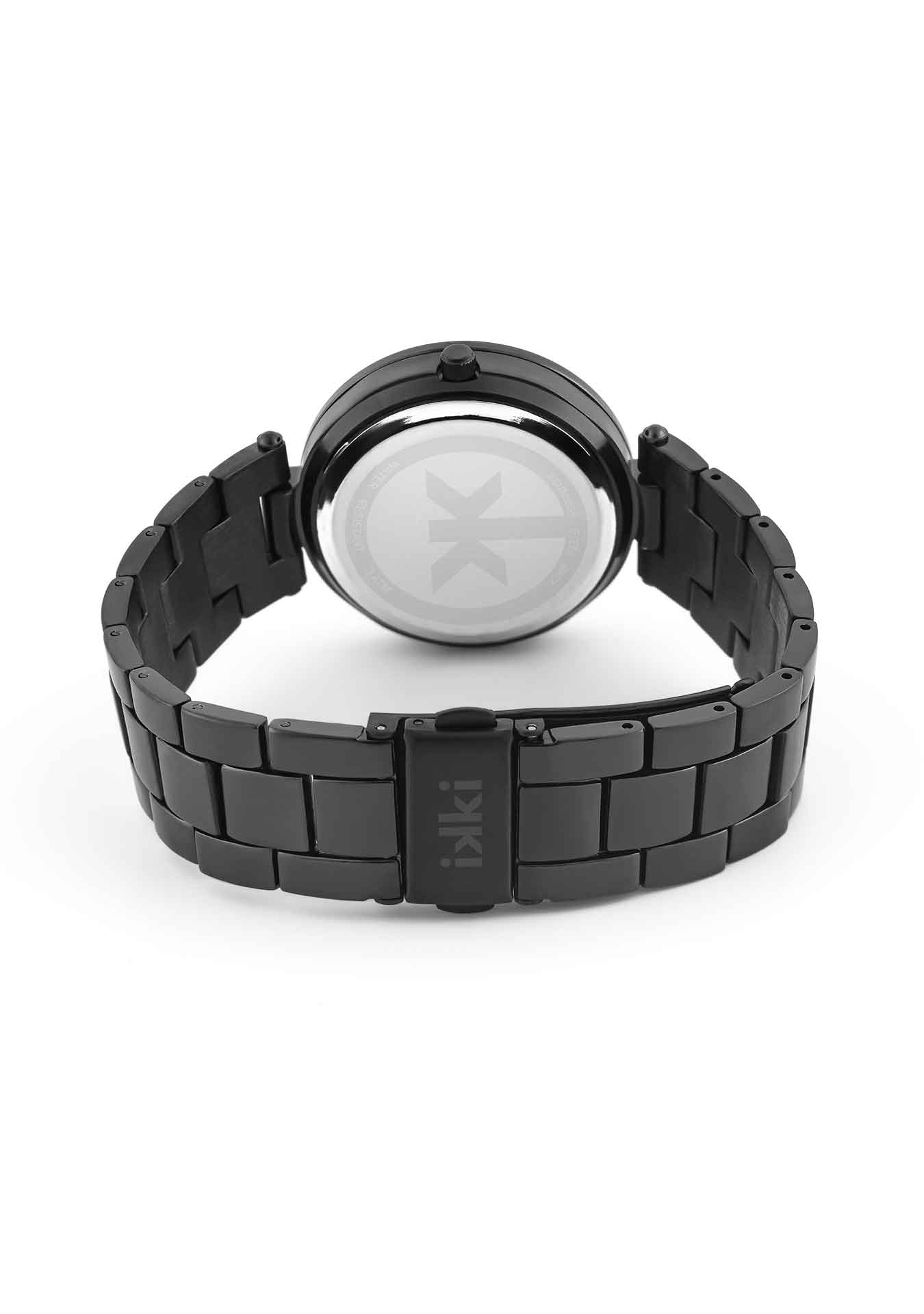 This watch from the PAIGE-collection has a diameter of 35MM and a heigt of 8 MM. The shape of the case is round and has the color black. The dial color is black with silver index. All IKKI watches are 3ATM and are made with hardened mineral glass.